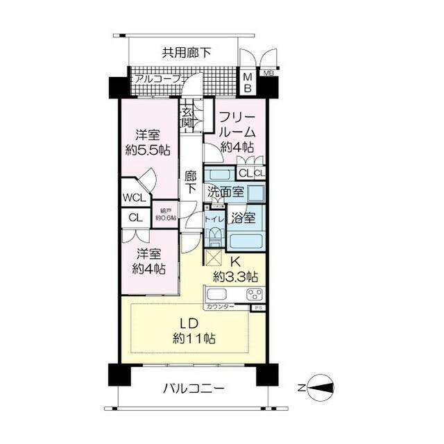 | 間取り内訳 | LD11 K3.3 洋4 洋5.5 S4 |