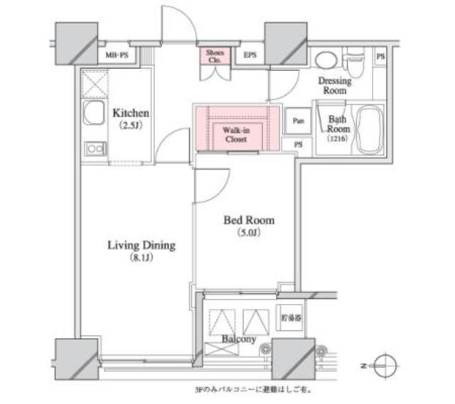 | 間取り内訳 | 1DK 開口向き西 |
