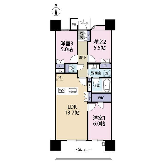 | 間取り内訳 | LDK13.7 洋6 洋5.5 洋5 |
